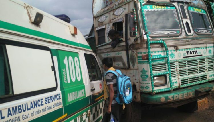 ୧୦୮ ଆମ୍ବୁଲାନ୍ସକୁ ପିଟିଲା ଟ୍ରକ : ଅଳ୍ପକେ ବର୍ତ୍ତିଲେ ଗର୍ଭବତୀ