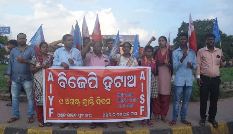 ତେଣୁ ଅଗଷ୍ଟ ୯ କ୍ରାନ୍ତି ଦିବସରେ ଅଖିଳ ଭାରତ ଛାତ୍ରସଂଘ ଓ ଅଖିଳ ଭାରତ ଯୁବସଂଘ ପକ୍ଷରୁ ମିଳିତ ଭାବରେ ସର୍ବଭାରତୀୟ “ଶିକ୍ଷା ବଂଚାଅ-ଦେଶ ବଂଚାଅ” ଡାକରା ଦିଆଯାଇଥିଲା।ୟୁଜିସି ବଂଚାଇବା,ଖାଲିପଡିଥିବା ୫୦ଲକ୍ଷ ପଦବୀ ପୂରଣ,BNEGA ଆଇନକୁ କାର୍ଯ୍ୟକାରୀ କରିବା,ଭିଡତନ୍ତ୍ରକୁ ବନ୍ଦ କରିବା,ଦୁଷ୍କର୍ମ ଓ ଯୌନ ନିର୍ଯାତନା ବନ୍ଦ କରିବା ଦାବିରେ ,ଭୁବନେଶ୍ୱର ଠାରେ AISF-AIYF ଦ୍ୱାରା ପ୍ରତିବାଦ ସଭା ଅନୁଷ୍ଠିତ ହୋଇଥିଲା।ଏହି ପ୍ରତିବାଦରେ AISFର ପବିତ୍ର ସ୍ୱାଇଁ,ଅବିନାଶ ନାୟକ,ସଙ୍ଘମିତ୍ରା ଜେନା,ରିଙ୍କି ବେହେରା ଓ AIYFର ସୁଭାଶିନୀ ଭଦ୍ର,ଗୋହିଗୋବିନ୍ଦ ବେଶ୍ରା,ନାରାୟଣ ଡାଳୁଆ,ବିଶ୍ୱଜିତ୍ ନାୟକ,ସୁରେଶ ମୁଦୁଲି,ବିକ୍ରମ କୁମାର ପ୍ରମୁଖ ନେତୃତ୍ୱ ନେଇଥିଲେ।