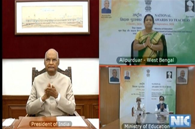 ନୂଆଦିଲ୍ଲୀ,୫/୯(ଓଡ଼ିଆ ନ୍ୟୁଜ): ଗୁରୁଦିବସ ଅବସରରେ ରାଷ୍ଟ୍ରପତି ରାମନାଥ କୋବିନ୍ଦ ଶନିବାର ସାରା ଦେଶର ୪୭ ଜଣ ଶିକ୍ଷକଙ୍କୁ ପ୍ରଥମଥର ପାଇଁ ଭର୍ଚୁଆଲ ମାଧ୍ୟମରେ ଆୟୋଜିତ ପୁରସ୍କାର ସମାରୋହରେ ଜାତୀୟ ଶିକ୍ଷକ ପୁରସ୍କାର ପ୍ରଦାନ କରିଛନ୍ତି । ରାଷ୍ଟ୍ରପତି ପୁରସ୍କାର ବିଜେତାମାନଙ୍କୁ ଅଭିନନ୍ଦନ ଜଣାଇବା ସହ ବିଦ୍ୟାଳୟ ଶିକ୍ଷାର ଗୁଣାତ୍ମକ ମାନ ବୃଦ୍ଧି ପାଇଁ ଶିକ୍ଷକମାନଙ୍କ ଦ୍ୱାରା ନିଆଯାଇଥିବା ପଦକ୍ଷେପକୁ ଉଚ୍ଚ ପ୍ରଶଂସା କରିଥିଲେ। ଏଥର ଜାତୀୟ ପୁରସ୍କାର ବିଜେତାମାନଙ୍କ ମଧ୍ୟରୁ ପ୍ରାୟ ୪୦ ପ୍ରତିଶତ ହେଉଛନ୍ତି ମହିଳା। ତେଣୁ ଶିକ୍ଷୟତ୍ରୀ ଭାବରେ ମହିଳାମାନଙ୍କ ଭୂମିକାକୁ ସେ ପ୍ରଶଂସା କରିଥିଲେ ।