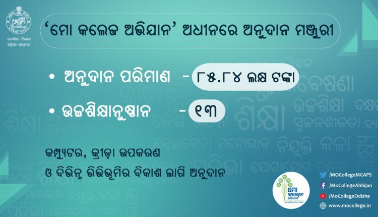 ମୋ କଲେଜ’ ଅଭିଯାନ ଅଧୀନରେ ୧୩ଟି ମହାବିଦ୍ୟାଳୟ ପାଇଁ ୮୫ ଲକ୍ଷ ଟଙ୍କାର ପ୍ରକଳ୍ପକୁ ମଞ୍ଜୁରୀ